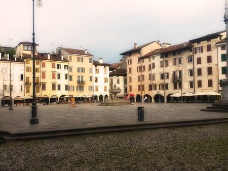Piazza Maggiore in the city of Feltre in the province of Belluno, italy - 2021. High quality photo