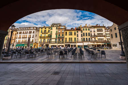 Padua. Piazza dei Signori (square of the lords) or della Signoria, one of the most beautiful squares in Padua downtown, surrounded by houses, shops and restaurants. Veneto, Italy.