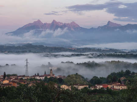 Fornoli village in Lunigiana, north Tuscany, Italy. Apuan Alps behind.