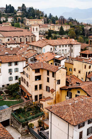 Aerial view of the Bergamo in northern Italy. Bergamo is a city in the Lombardy region.