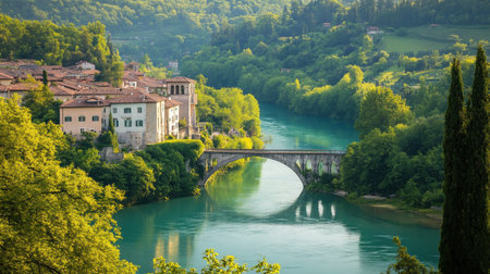 Overview of Bassano del Grappa, Italy, overlooking the Brenta river
