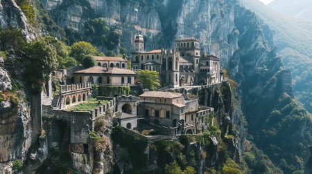 Ancient Monastery Nestled in Remote Mountainous Forest. Concept of Historic Architecture, Tranquil Peace, Spiritual Retreat.