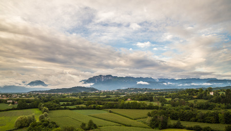 The sun goes behind the clouds over the countryside of Udine, Friuli-Venezia Giulia, Italy