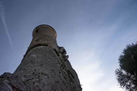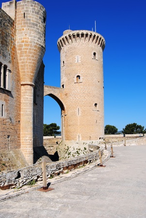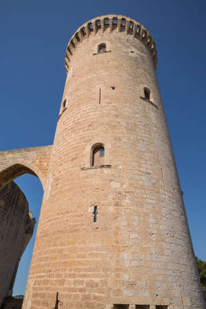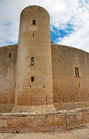 Imposing view from below Bellver castle tower, Mallorca Spain