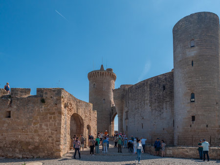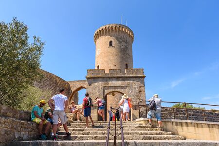 Mallorca, Spain - May 8, 2019 : Tourist visit Bellver Castle (Castell de Bellver) near the center of Palma on the Island of Majorca, Balearic Islands, Spain.