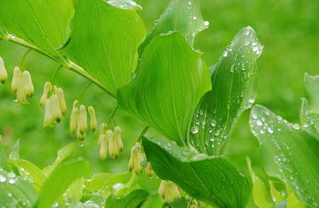 High resolution image of blossoming Solomon's seal the forest mayflower