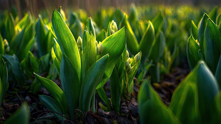Beautiful lily of valley growing in ground. Concept plant, botany. Daylight.
