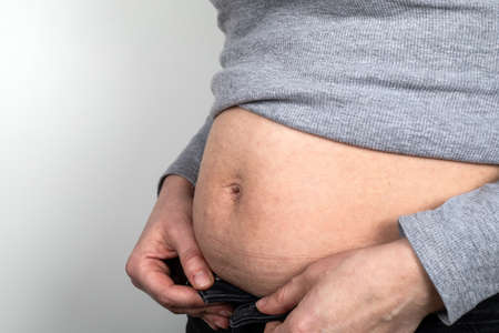 man with excessive belly fat, overweight concept