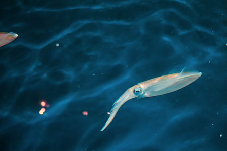 squid with colorful eyes swimming in water