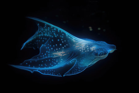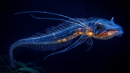 deep-sea creatures fin fluttering in the water, with glowing blue light, created with generative ai