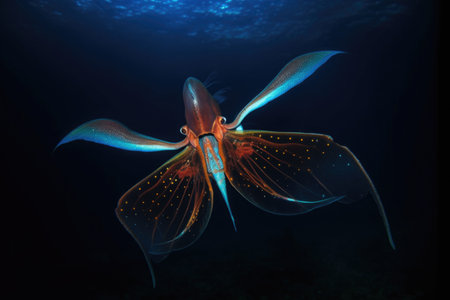 vampire squid with tentacles spread in the abyss, created with generative ai