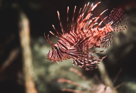 Lion fish (Pterois volitans) in aquarium.