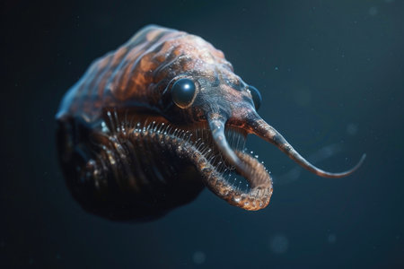 An ominous snapshot of a predatory mollusk lurking in the depths of the ocean