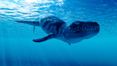 Underwater prehistoric creature or dinosaur swimming underwater. superlative generative AI image.