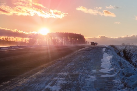 Sunset in the city with traffic. architecture silhouettes of Europe. Landscape of city. Landscape Europe