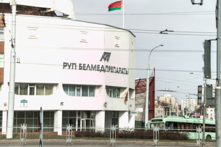 Minsk. Belarus. 04.28.2022. Belmedpreparaty is one of the largest state pharmaceutical enterprises in Belarus. The enterprise carries out industrial production and wholesale of medicines.