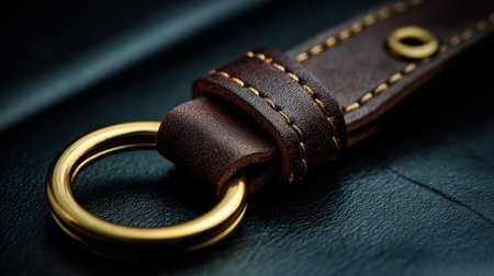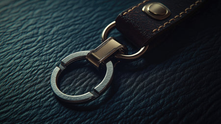 Close-up image of an elegant leather keychain ring set on a dark textured surface, showcasing intricate design and craftsmanship perfect for accessories.