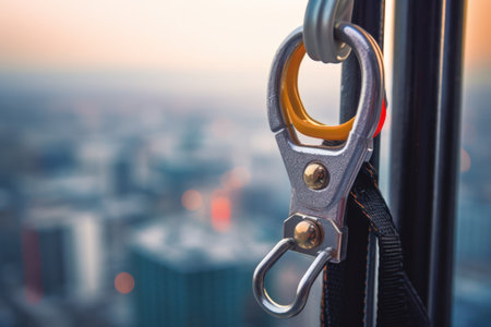 Construction safety equipment for work at height, safety harness and a seat belt closeup. Generative AI