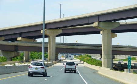 Maryland, U.S.A - May 17, 2021 - The traffic on Interstate 95 South under the ramp towards Baltimore and Washington DC