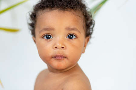 cute portrait of an African baby at home, close-up