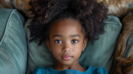 Little African American girl lying on sofa and looking at camera