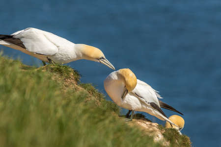 Gannets preparing for their breeding season on the cliffs