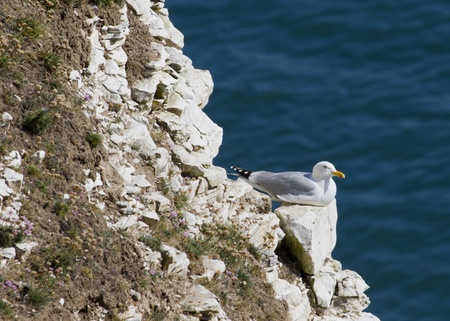 Seagull at Etretat at sunsetSeagull at Etretat cliff at sunset in Normandy