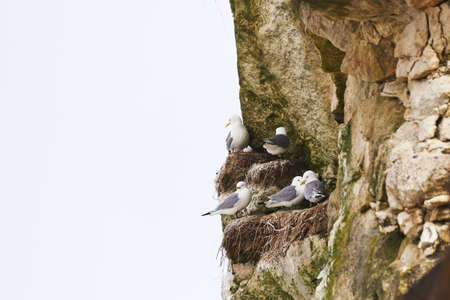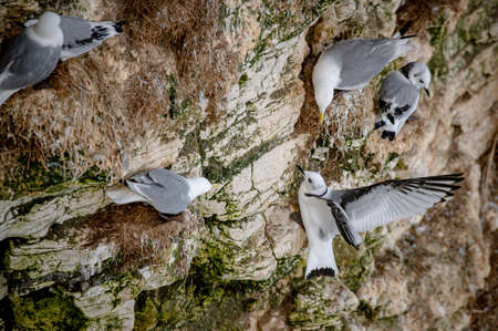 black-legged kittiwake nesting at the limestone cliffs at Bulbjerg at the North Sea coast of Denmark