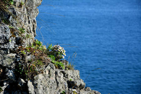 Cliffs with Heath vegetation at Cap Frehel in Brittany France