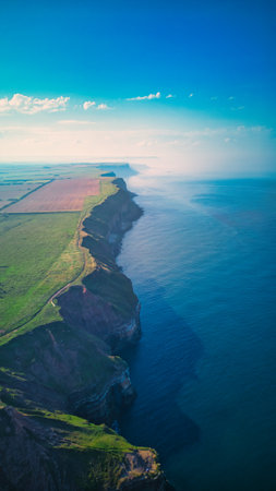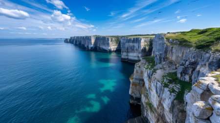 Aerial Panoramic View of Sea Cliffs and Azure Waters
