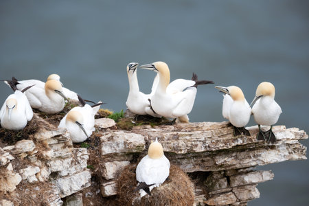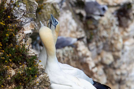 Gannets preparing for their breeding season on the cliffs