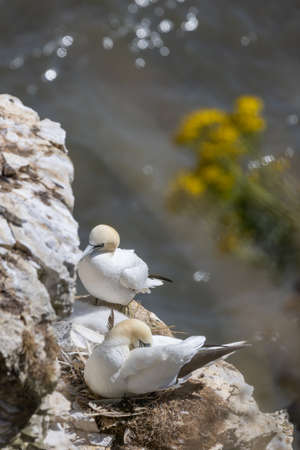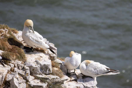 Gannets, Morus bassanus, at Bempton Cliffs in Yorkshire