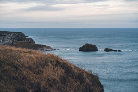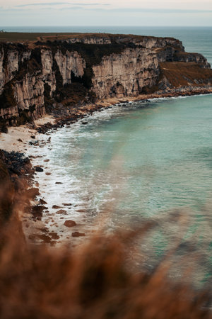 Majestic cliffs with ocean view, blurred background,