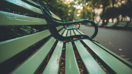 Bench in the park in autumn Selective focus on bench. garden on background Generative AI