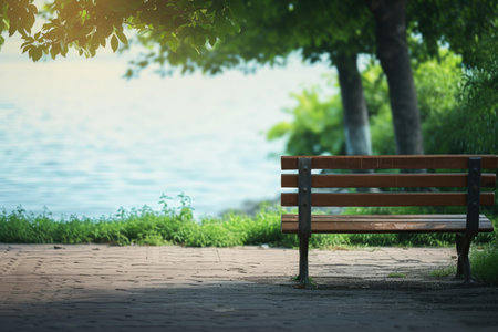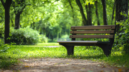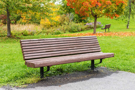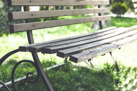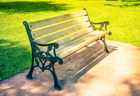 Relaxing bench by the park grass