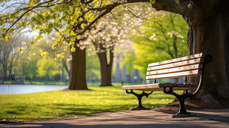 A parkbench at the park during spring - Generative AI