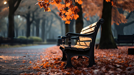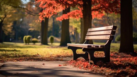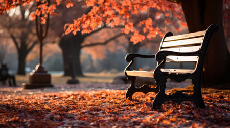 A parkbench at the park during autumn - Generative AI
