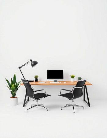 Modern office interior. Workplace mockup. 3d render illustration