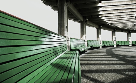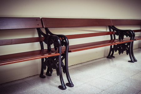 Dark brown benches of a railway station