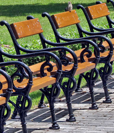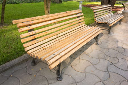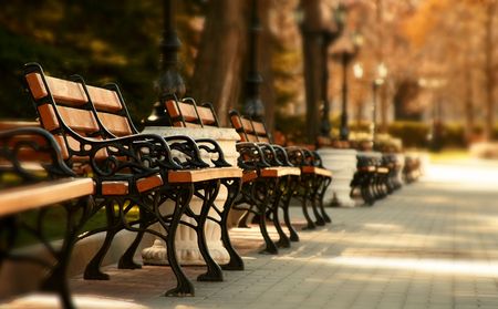 Wooden benches in the city park