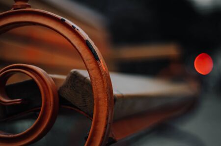 orange metal bench in the park close-up