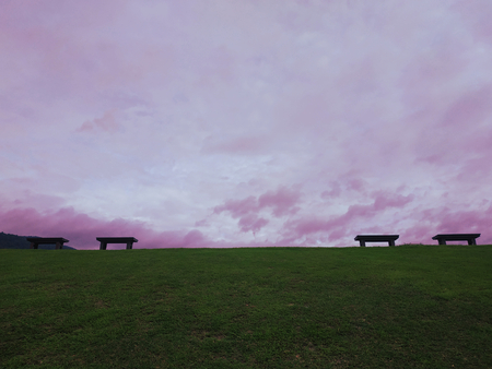 chairs on a park and pink sky