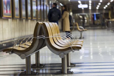 Benches in the lobby, underground, artificial light