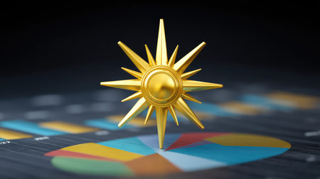 A striking golden starburst icon sits atop a colorful analytics chart, symbolizing success and growth in business and finance. Ideal for presentations and professional use.