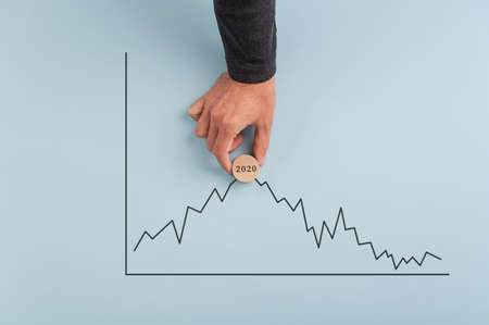 Shallow depth of field (selective focus) with details of a chart showing the stock market crash from March 2020 due to the Covid-19 pandemic on a computer screen (S&P500 index)