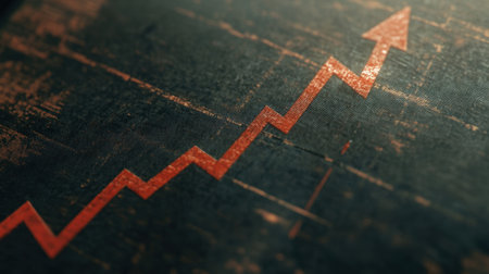 A close-up view of a red growth chart on a paper surface, symbolizing financial success and progress in business strategy and investment opportunities.