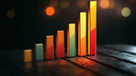 This image features a glowing golden bar chart on a dark background, symbolizing business growth and success. Ideal for presentations and marketing materials.