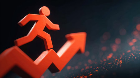 Abstract person-shaped icon ascending graph lines, symbolizing personal success