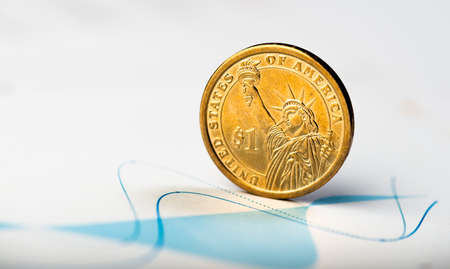 Golden and silver coins on a colorful textured surface
