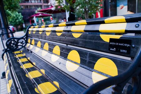 SANTIAGO - JANUARY 20 Painted benches by different artists on Isidora Goyenechea street in El Golf neighbourhood on January 20, 2013 in Santiago, Chile